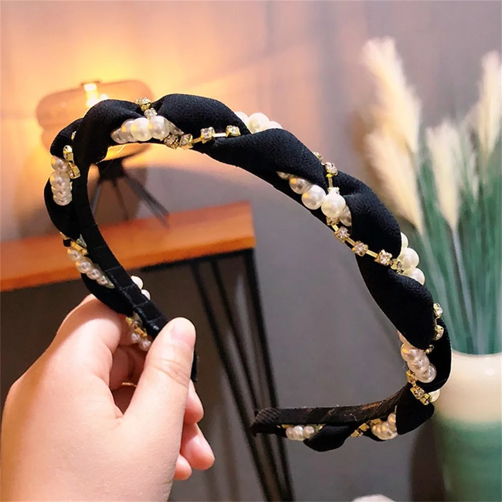Elegant Look Weave Crystal Beads Headbands For Women Girls Elastic Hairbands For Women Girls Shiny Luxury Head Band Hoops Headwear Gifts