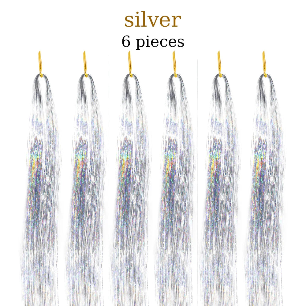 Hair Extensions and Wigs Hair Tinsel Kit (36 Inch, 12Colors/12Colors With Tools) Sparkle Hair Tinsel With Tools Multi-color Colors 36 Inch Glitter Fairy