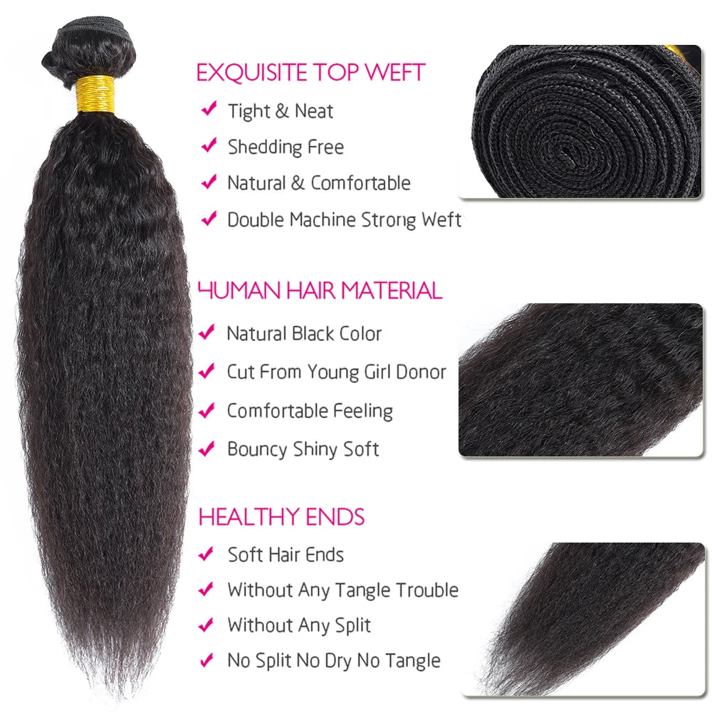 Hair Extensions and Wigs Kinky Straight Bundles Human Hair 1 3 4 Bundles Coarse Yaki Weave Human Hair Bundles Original 100% Human Hair Extensions Sale