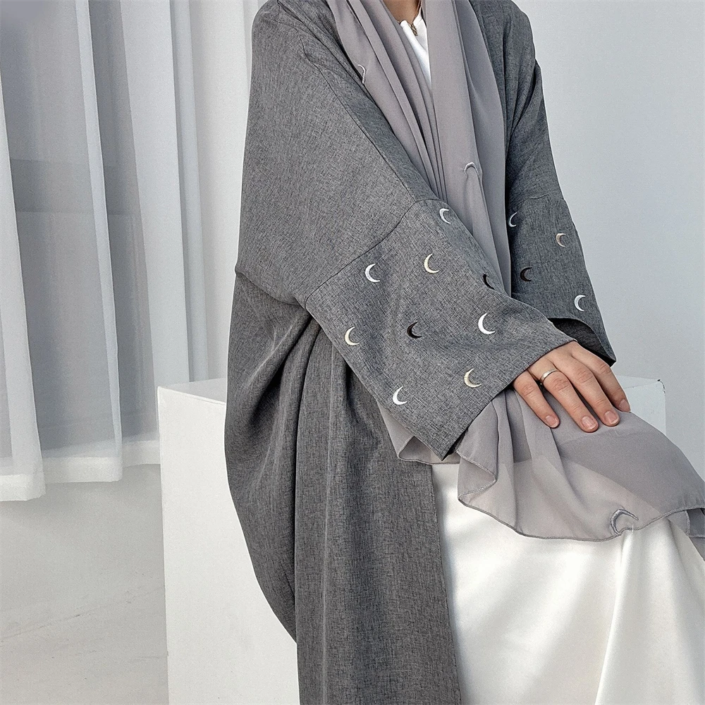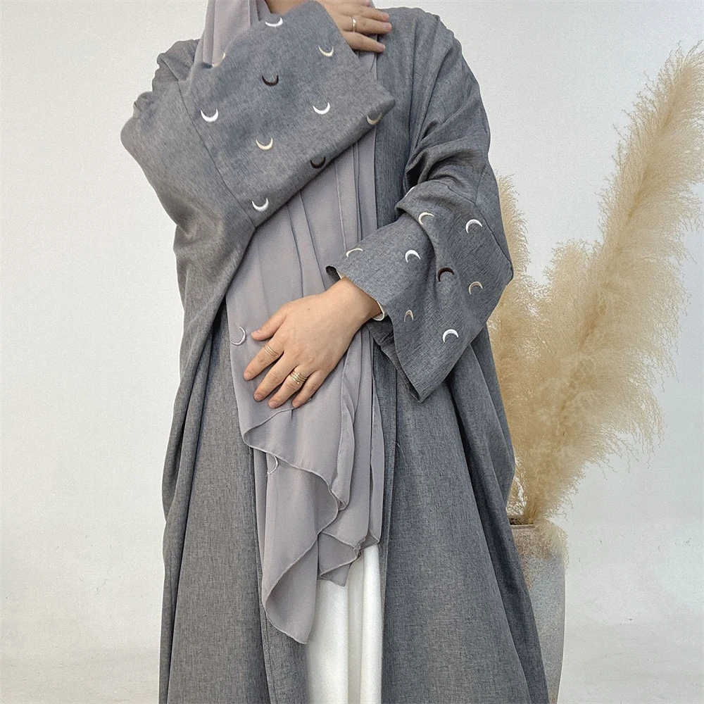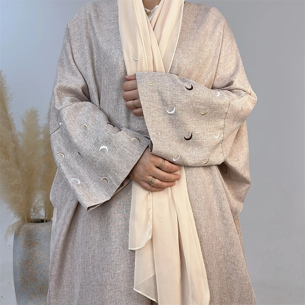 Moon Embroidery Open Abaya 2024 New Luxury Kimono Coat Hijab Muslim Sets for Women Islam Retro Modest Clothing for Party Kebaya