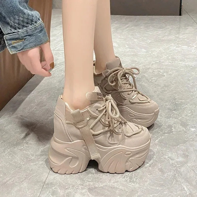 Sneaker women Walking Sneakers Autumn Lace-up High Platform Chunky Shoes Breathable Leather Shoes 10CM Winter Wedge Heels Casual Shoes