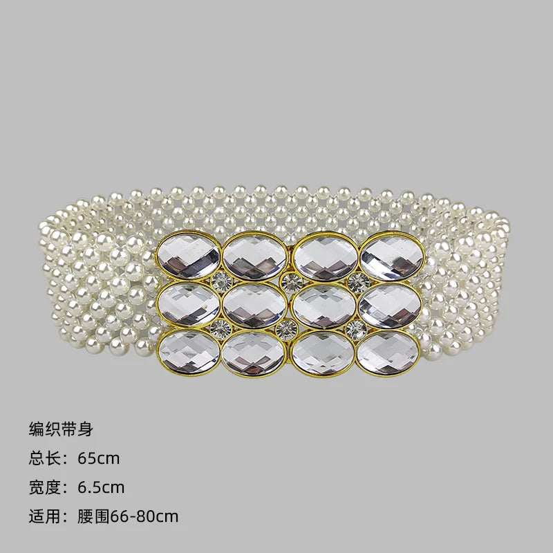 Waist Chain Large Pearl Waist Chain Women's Elastic Belt with Diamond Decoration All-match Skirt Fashion Casual Luxury Design Girdle Gothic
