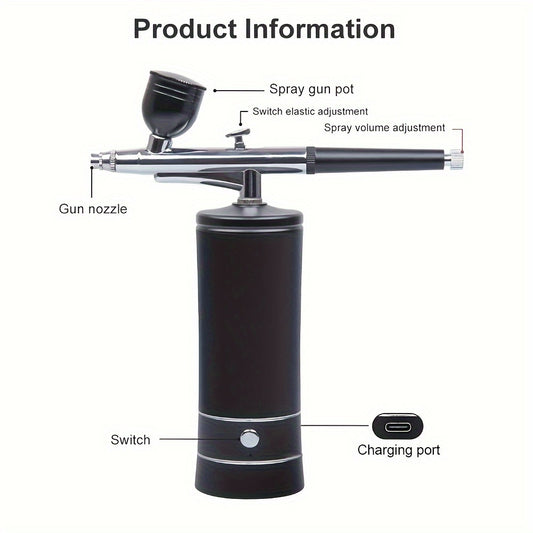 Beauty Tools 1 Set Airbrush Kit With Compressor, Auto Handheld Airbrush Gun With 0.3mm Tip, Rechargeable Portable Air Brushes For Painting, Tattoo, Nail Art, Model Coloring, Makeup, Cake