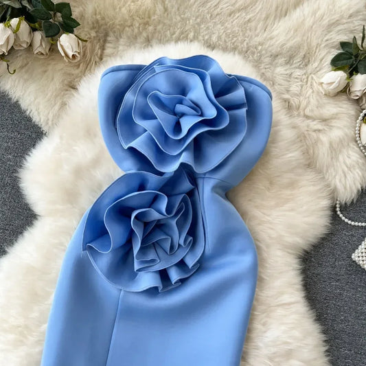 3D Flowers Strapless Formal Occasion Dresses for Women Slash Neck Skinny Hip Wrap Dress American Chic Female Vestidos Dropship
